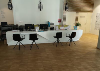 - Bar, banque d’accueil, podium. . .